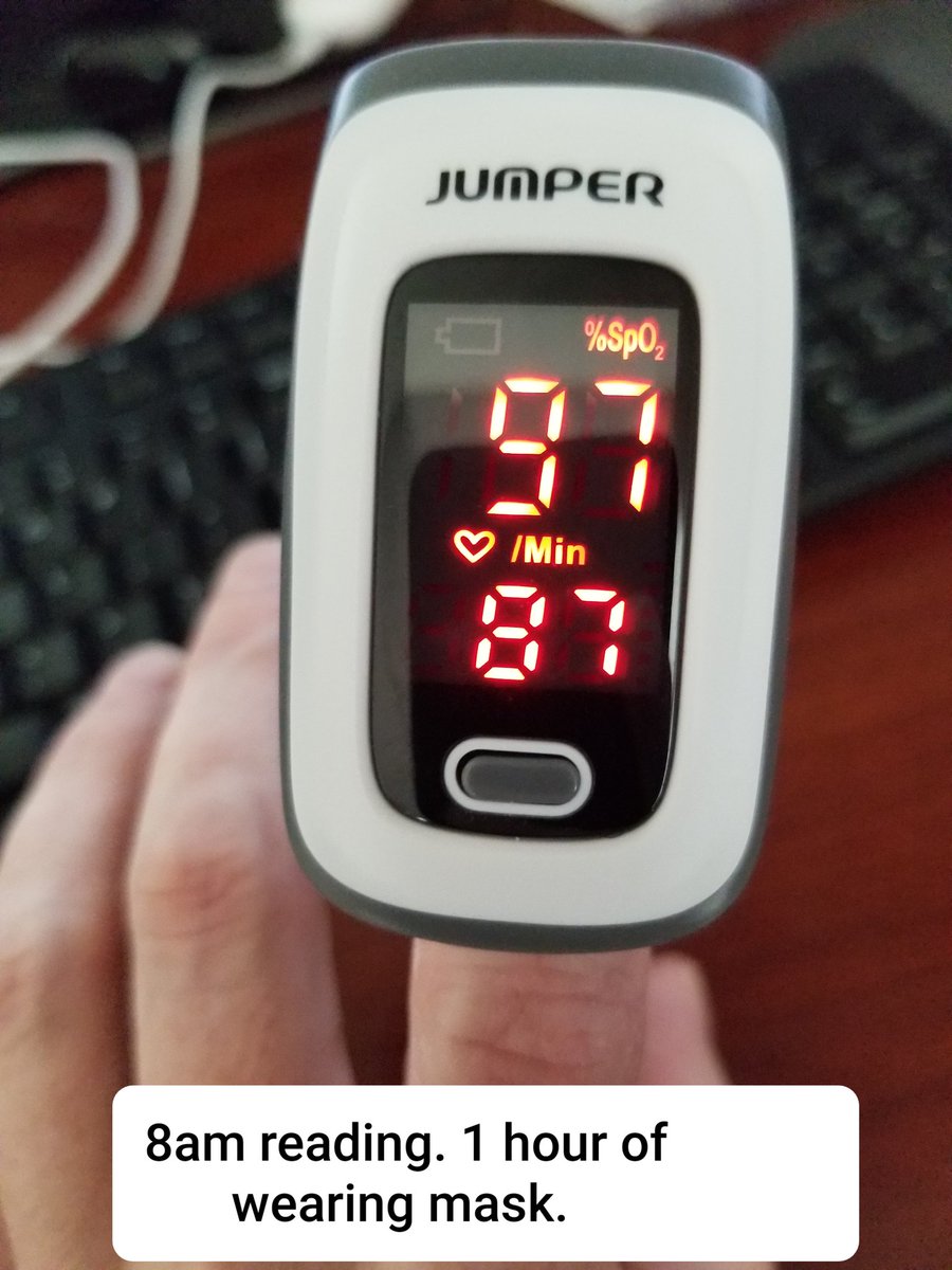 The 4th floor covid wing has begun. That makes old wing ICU 2nd floor and new wing 4th floor designated covid floors. Do better Tx! #WearADamnMask. Here are my ox levels after 8 hours of masks. I with alpha1, copd, asthma, less than 50% lung capacity can wear a mask, you can too!pic.twitter.com/vcSeNf7uzF