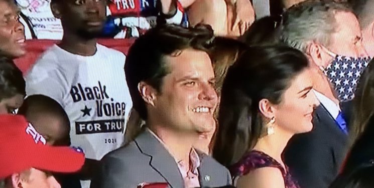 What do you call the way Matt Gaetz styled his hair tonight for the big Trump Rally in Florida??pic.twitter.com/HAghOOvjmS