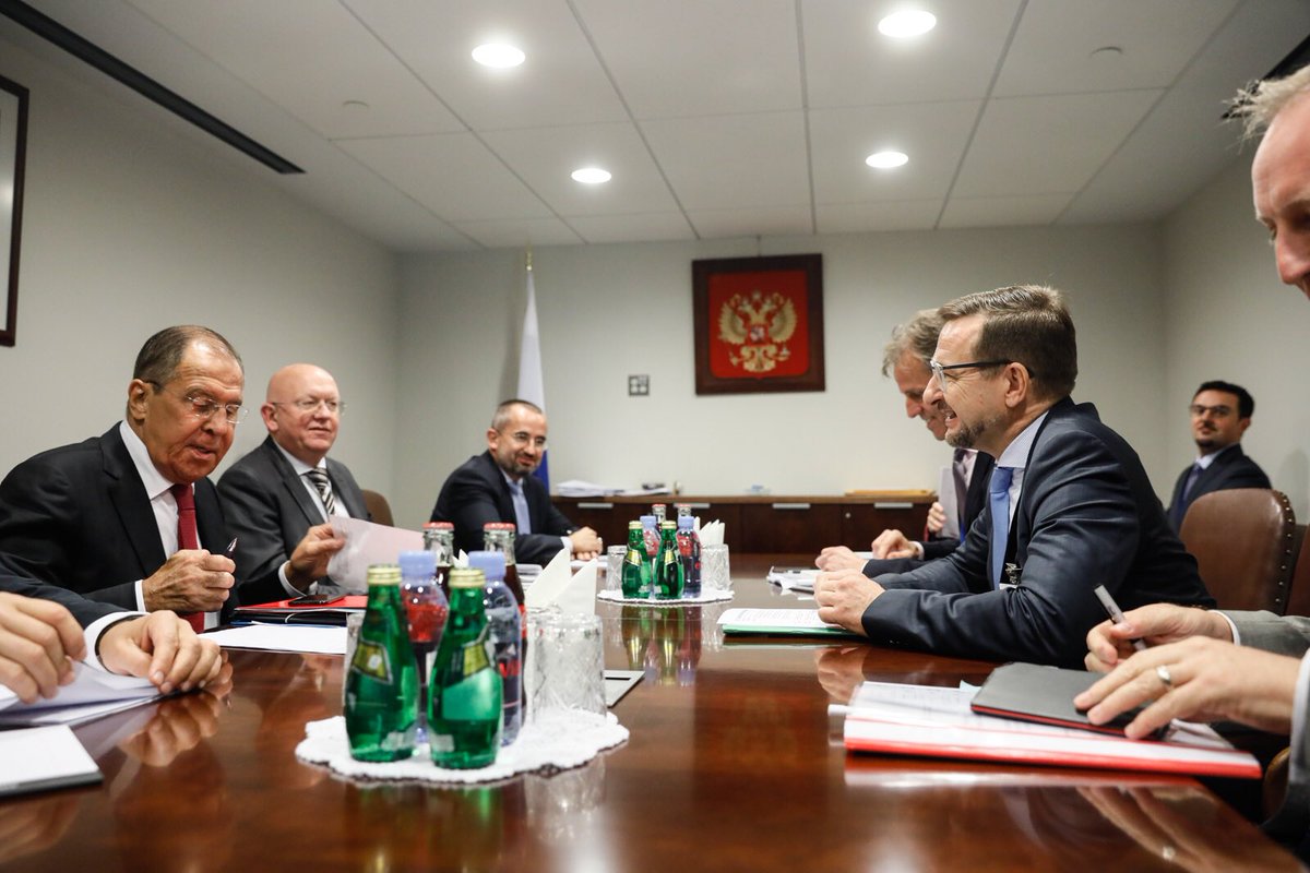 #Lavrov held a meeting with the @OSCE Secretary General Thomas #Greminger. The role of the Organization in the settlement of regional conflicts & the preparations for the OSCE Ministerial Council in Milan on December 6-7 were on the agenda. #UNGA #UNGA73pic.twitter.com/vcrUTlChsT