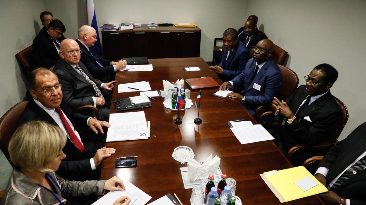 #Lavrov held talks w/Pres. of #EquatorialGuinea Theodor Obiang Nguema Mbasogo, discussed the activation of the political dialogue, the building up of a mutually beneficial partnership in the trade, economic & military-technical spheres. #UNGA #UNGA73pic.twitter.com/PtXVSytpYX