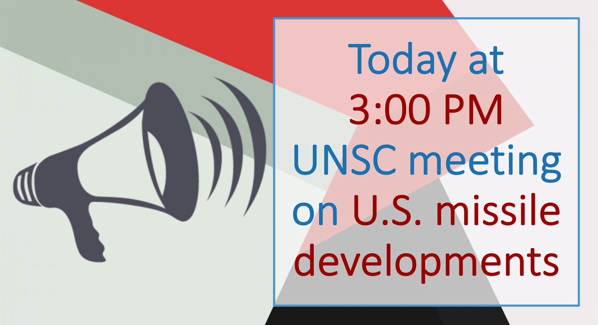 📍 Today at 3.00 PM: #UNSC Briefing on US missile developments called by @RussiaUN & @Chinamission2un @mfa_russia spox #Zakharova: 🇺🇸 actions threaten intl security. We expect a frank exchange of views with our colleagues and the High Rep to UNSG 📺 http://webtv.un.org pic.twitter.com/UiBhu6nBhm