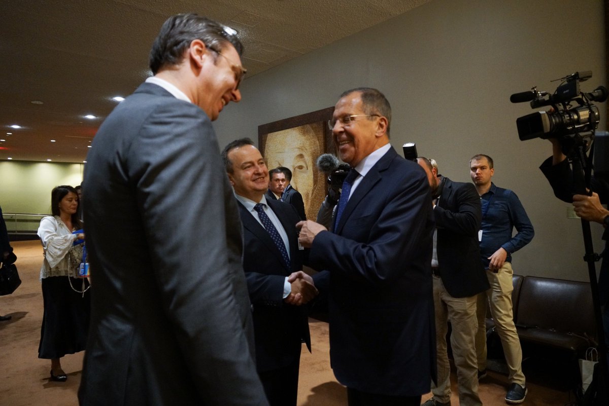 On the sidelines of #UNGA74 FM #Lavrov had a meeting w/ President of #Serbia A. Vučić, where they exchanged opinions on a wide range of issues on regional and international agenda. One of the focal points - #Kosovo settlement.