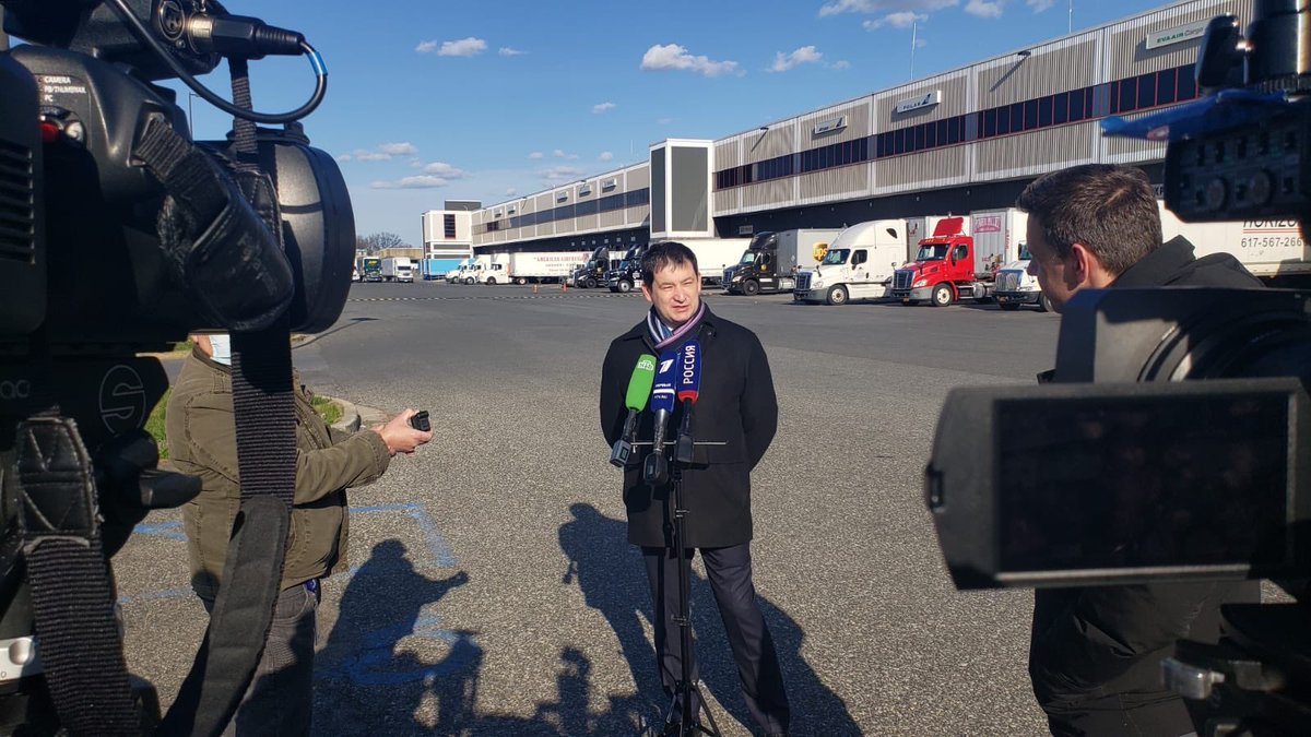 В аэропорту Нью-Йорка российский "дипломат" исключительно российским "журналистам" нахваливает российскую "помощь" ))) Жалкие клоуны.
