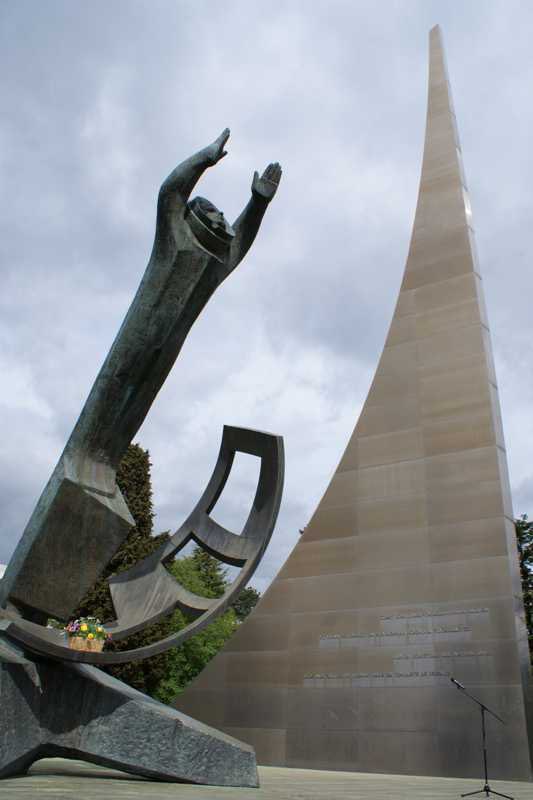 .Памятник «Покорителям космоса» из сверхпрочных титановых сплавов, посвящённый