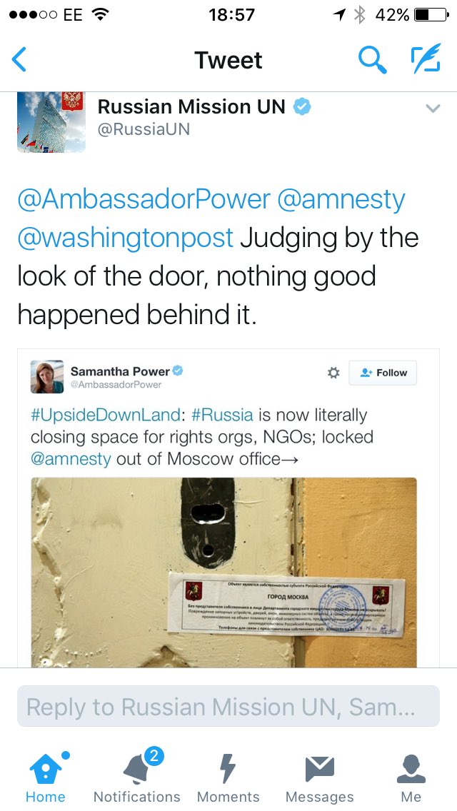 #UpsideDownLand: #Russia is now literally closing space for rights orgs, NGOs; locked @amnesty out of Moscow office→http://wapo.st/2e2stoA