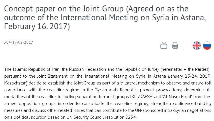 #Iran #Russia #Turkey established the Joint Group on #Syria – read more: http://bit.ly/2kRnWop  #AstanaMeeting #UNSCR2254 #ISSGpic.twitter.com/DZRzSmSPT2