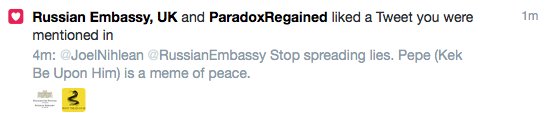 Here's a relevant thread adding some context to the Russian Embassy Pepe tweet.https://twitter.com/C_Stroop/status/818582279492468736 …