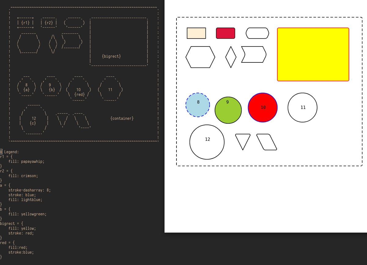 Working on making svgbob tag shapes and add css to it.