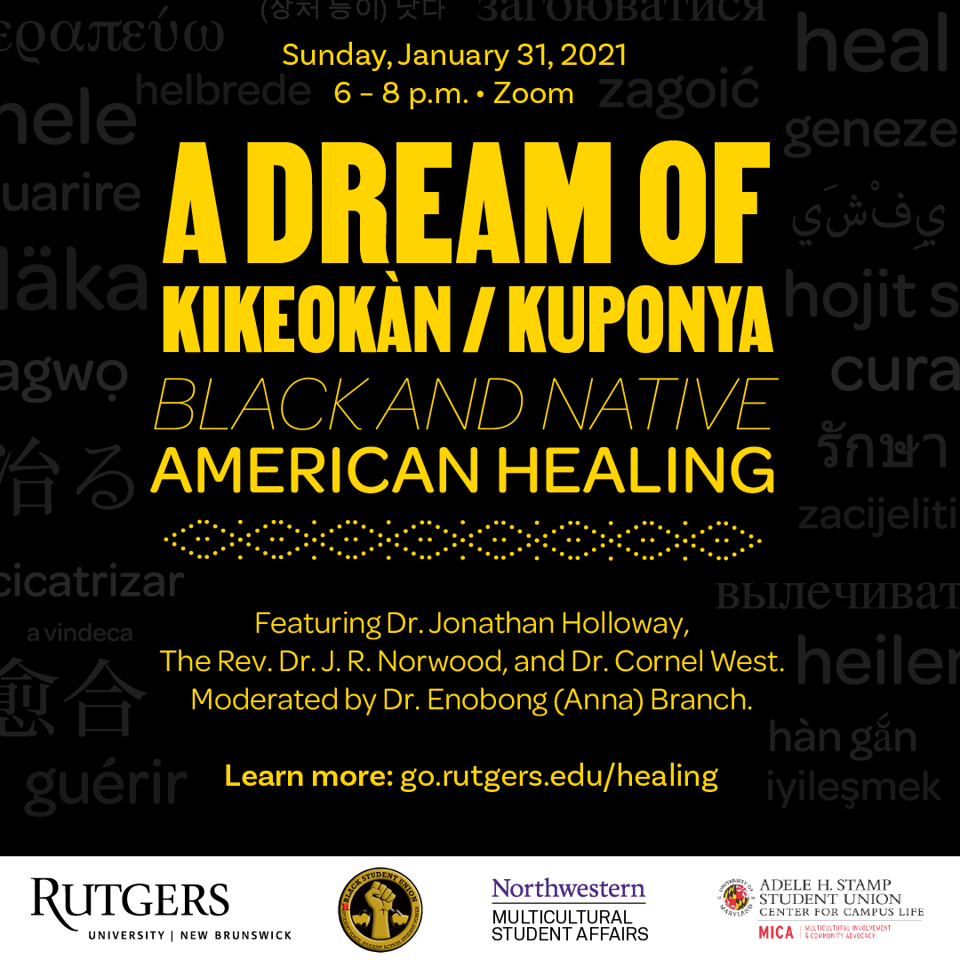 Did you know that Kikeokàn and Kuponya (Lenape and Swahili terms, respectively) both translate to the English word “healing”? Celebrate Black History Month and honor Native American heritage by joining us in the fight for peace + justice: http://go.rutgers.edu/healing
