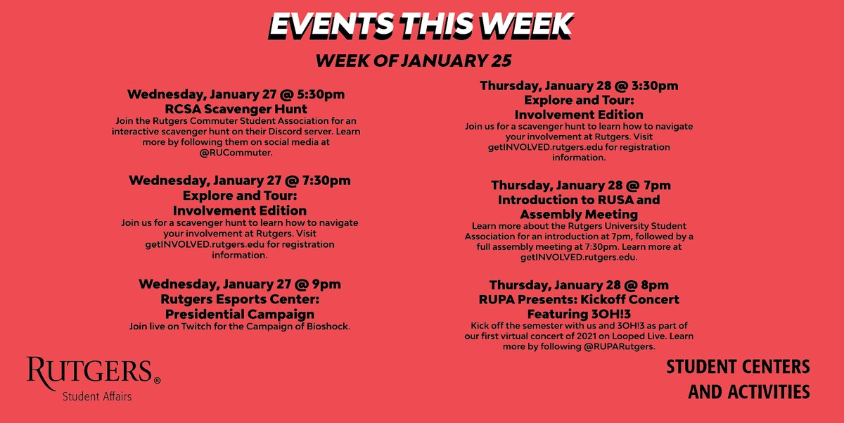 #InvolvementWeek! Student Centers and Activities is hosting a lot of great events this week to help you find ways to#getinvolved at Rutgers. We start with the Involvement Fair TODAY! http://sca.rutgers.edu@RUStudentOrgs@RutgersUEsports@RUPARutgers@rusa_nb@RUCommuterpic.twitter.com/bWeymiSqWm