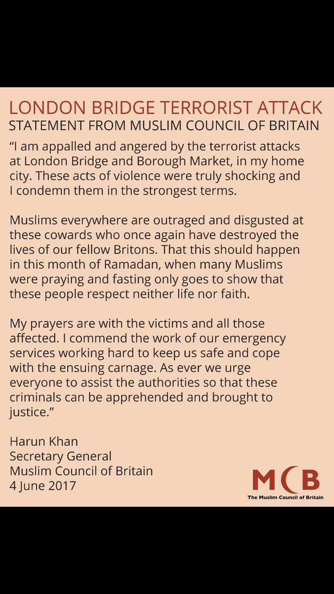 Important and valued statement from the Muslim Council of Britainpic.twitter.com/HSLpsXy8E9