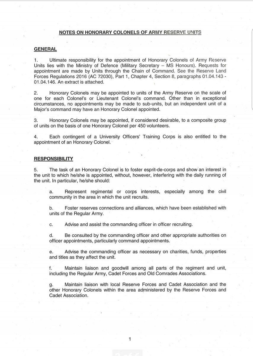 27/ in an effort for completeness) I will now attempt to tweet the handbook issued to all Hon Cols on appointment, outlining duties and