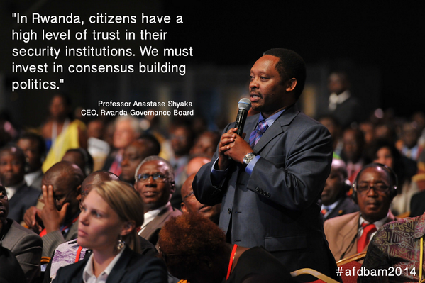 Professor @ashyaka on the result of consensus building politics. #Rwanda #afdbam2014 #AfricaWeWantpic.twitter.com/VaUFN9k4zF
