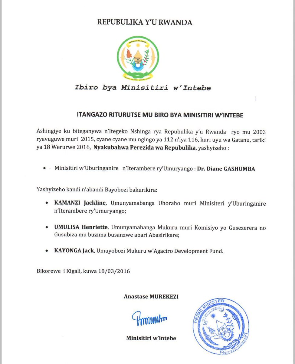 Perezida wa Repubulika yashyizeho Minisitiri mushya w'Uburinganire n'Iterambere ry'Umuryango Dr. Diane Gashumbapic.twitter.com/kwEw5ZGvUT