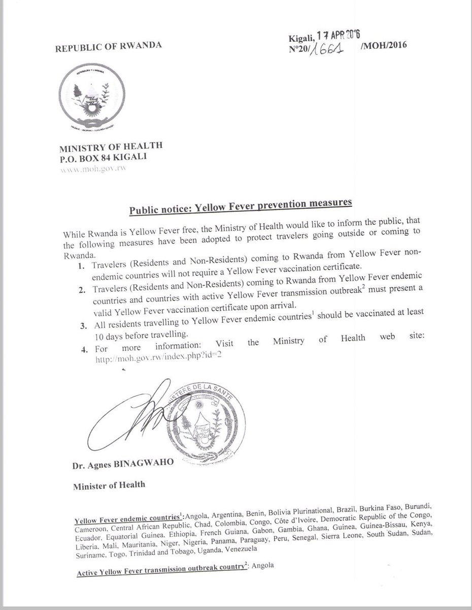 @RwandaGov@RwandaHealth Thx Minister for this clear message which listing and showing the yellow fever countries.Thanks. Twitter will use this to make your timeline better. UndoUndo