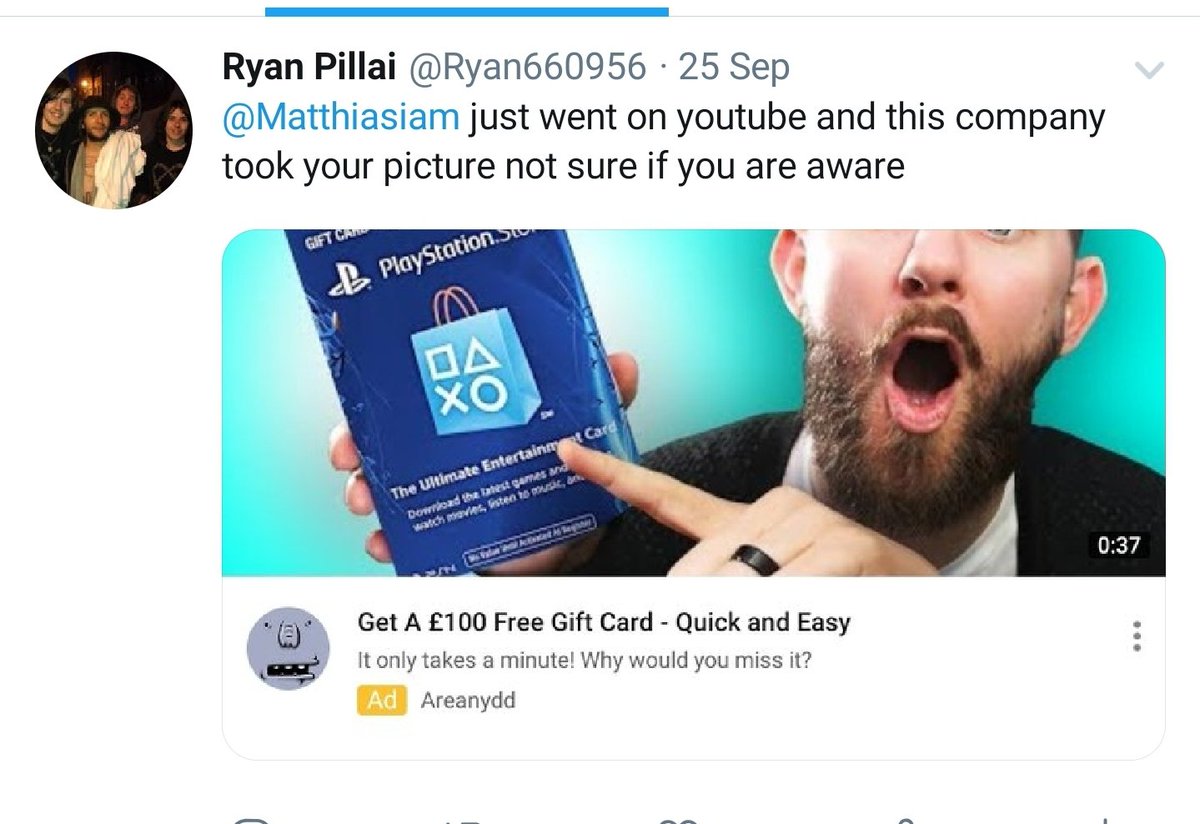 @Matthiasiam Do you have any knowledge of this ad using your face? (I'm pretty sure this is you) pic.twitter.com/GUf1MFkwuY