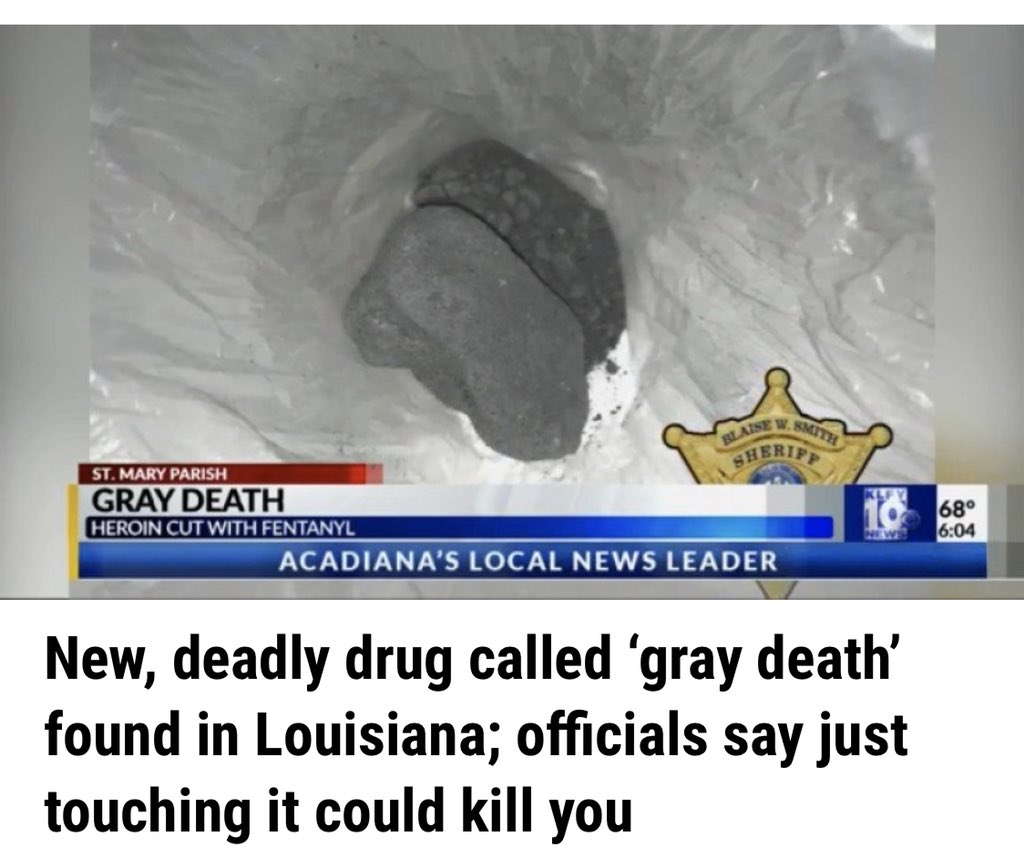 “Gray Death” is an urban legend from 2017 that has been debunked. The street drugs ended up being the same fentanyl analogs that can be dangerous to people who use them, but are not at all dangerous to people who aren’t injecting/snorting/otherwise ingesting intentionallyhttps://twitter.com/trevorhunt_ecu/status/1225096389207576576 …