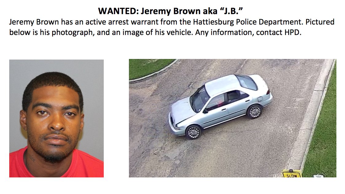 UPDATE: Jeremy Brown aka “J.B.” , 31, of Hattiesburg, turned himself in to Hattiesburg Police. He has been charged with accessory after the fact of a felony, and criminal street gang activity. He has been booked into the Forrest County Jail.pic.twitter.com/LQulqwOxnR
