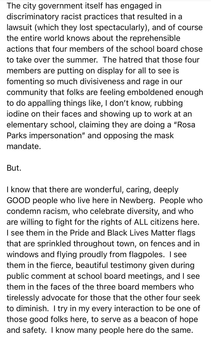 Some of the other stuff going on in Newberg: 1. School board is attempting to ban BLM/Pride symbols: https://pamplinmedia.com/nbg/142-news/520524-415870-school-board-refuses-to-rescind-blm-pride-ban-pwoff … 2. It may have broken the law hiring a lawyer: https://pamplinmedia.com/nbg/142-news/519833-415272-school-board-defies-state-law-in-hiring-outside-counsel-pwoff … 3. A high school kid joined a "slave trade" Snapchat group: https://pamplinmedia.com/nbg/142-news/521795-416952-newberg-student-involved-in-slave-trade-snapchat-group …