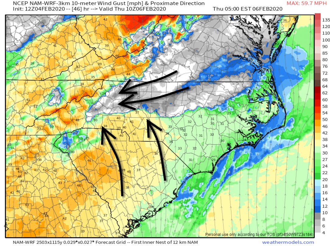 We could have a cold air damming scenario with light northeast winds and stable surface air intercepting a warm humid unstable air mass with loads of wind. This leads to localized enhanced helicity values. Stay weather aware Thursday.pic.twitter.com/mKWxpX5pnt