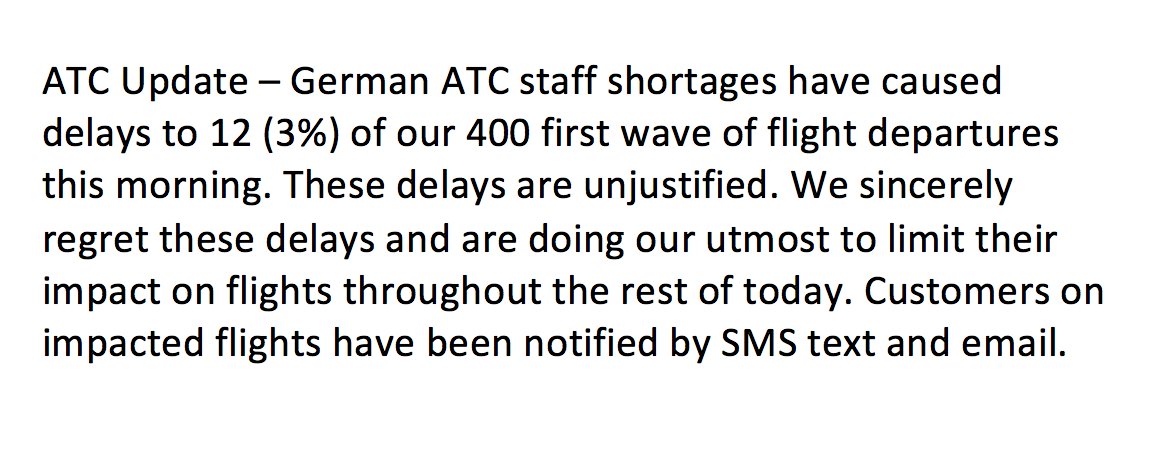Still no text or email for me but flight still saying delayed online.