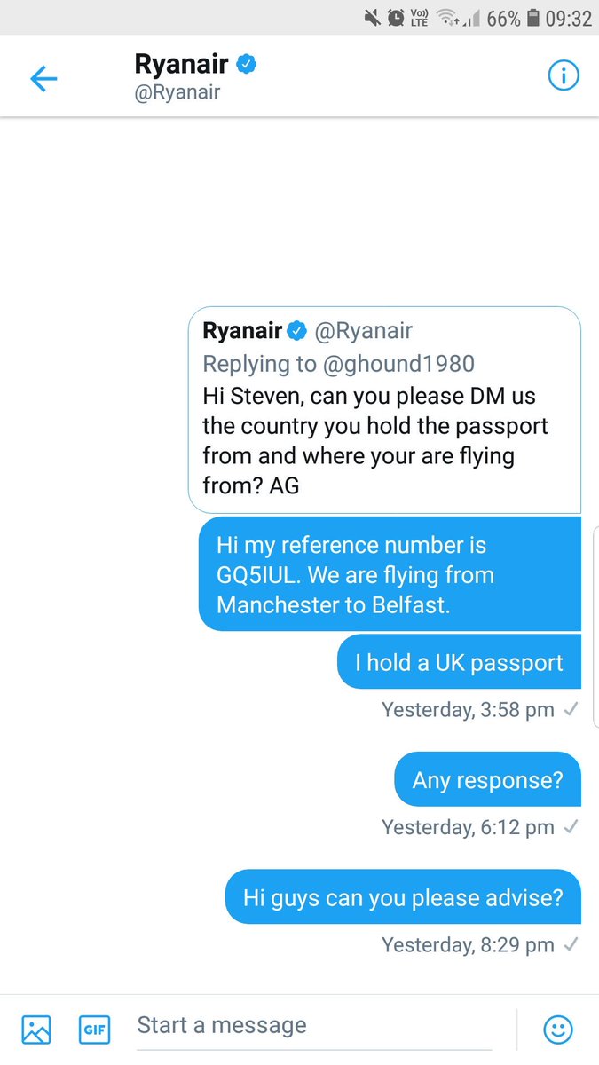@Ryanair still no response to my initial tweet which i sent over 30 hours ago. Asked my to dm more info which i did yesterday but after another 5 messages without reply this is getting beyond a joke now. Do you even care about your customers or the poor customer service u give?