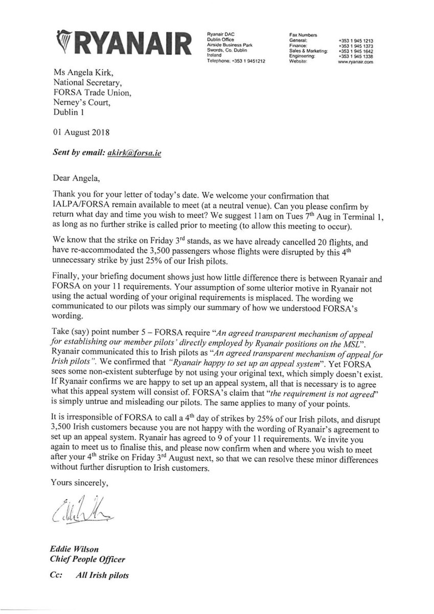 Ryanair today (Thurs August 2) asks FORSA to confirm they will meet us at 11am on August 7.https://twitter.com/Ryanair/status/1024704787563073540 …