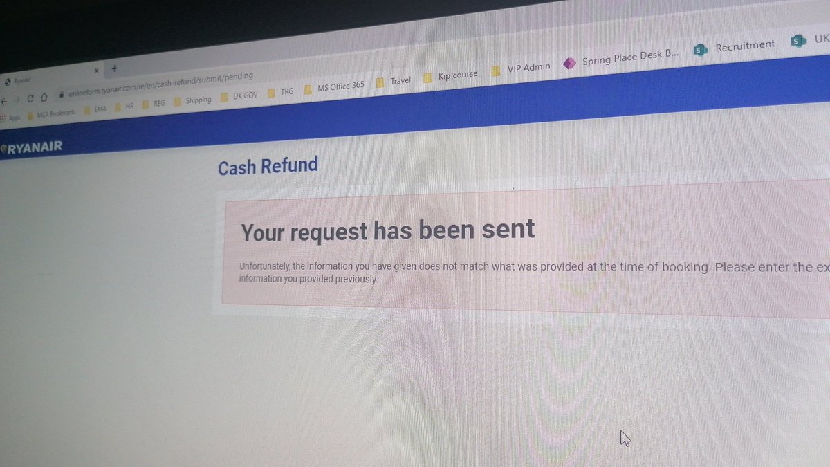 @Ryanair your delayed offer to pay my refund for cancelled Covid flights is outstanding and your cash refund link does not work please advise thank you.pic.twitter.com/YGDXvF8HxD