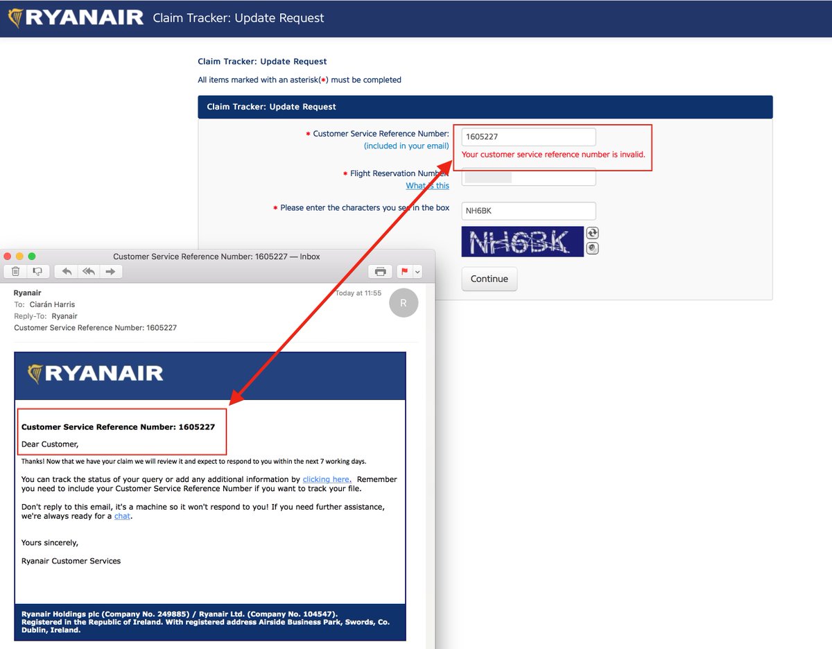 Arghhh @Ryanair - the "customer service reference number" you emailed me is invalid - and my baby's car seat is still broken beyond use...pic.twitter.com/RHsDw1xGdQ