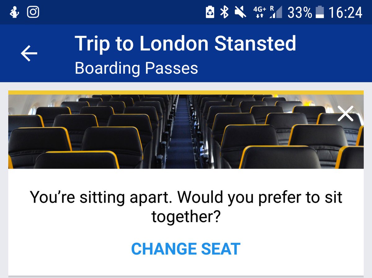 No kidding @Ryanair, that's cos you sat us apart so you can make more money by charging us to sit together. #craftypic.twitter.com/ak0mMIx1L8
