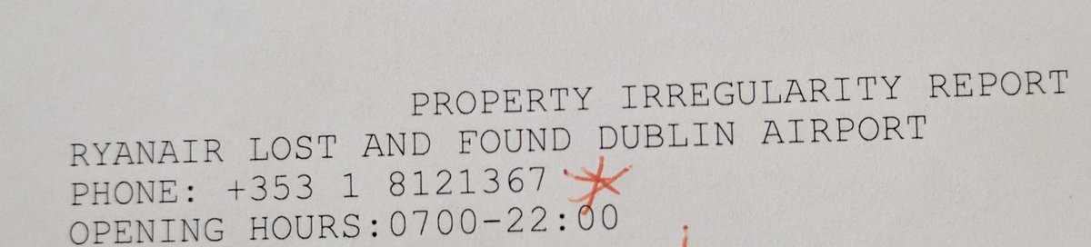 I filed a report with your agents last night. They gave me number to call for "Ryanair Lost and Found Dublin Airport" No answer.