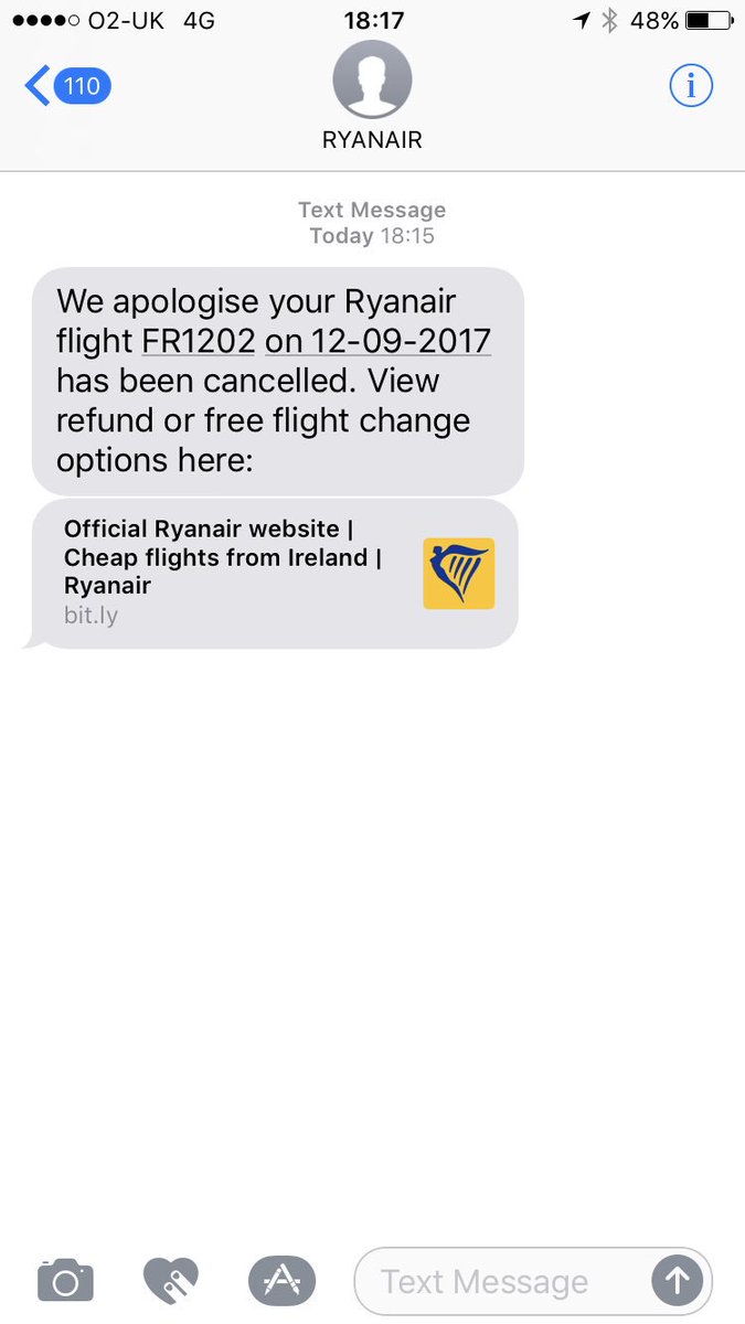 @Ryanair it's my birthday and you just sent a text saying my flight is cancelled to Palma tomorrow? Is this true? website says still ok?pic.twitter.com/feFHnz74TW
