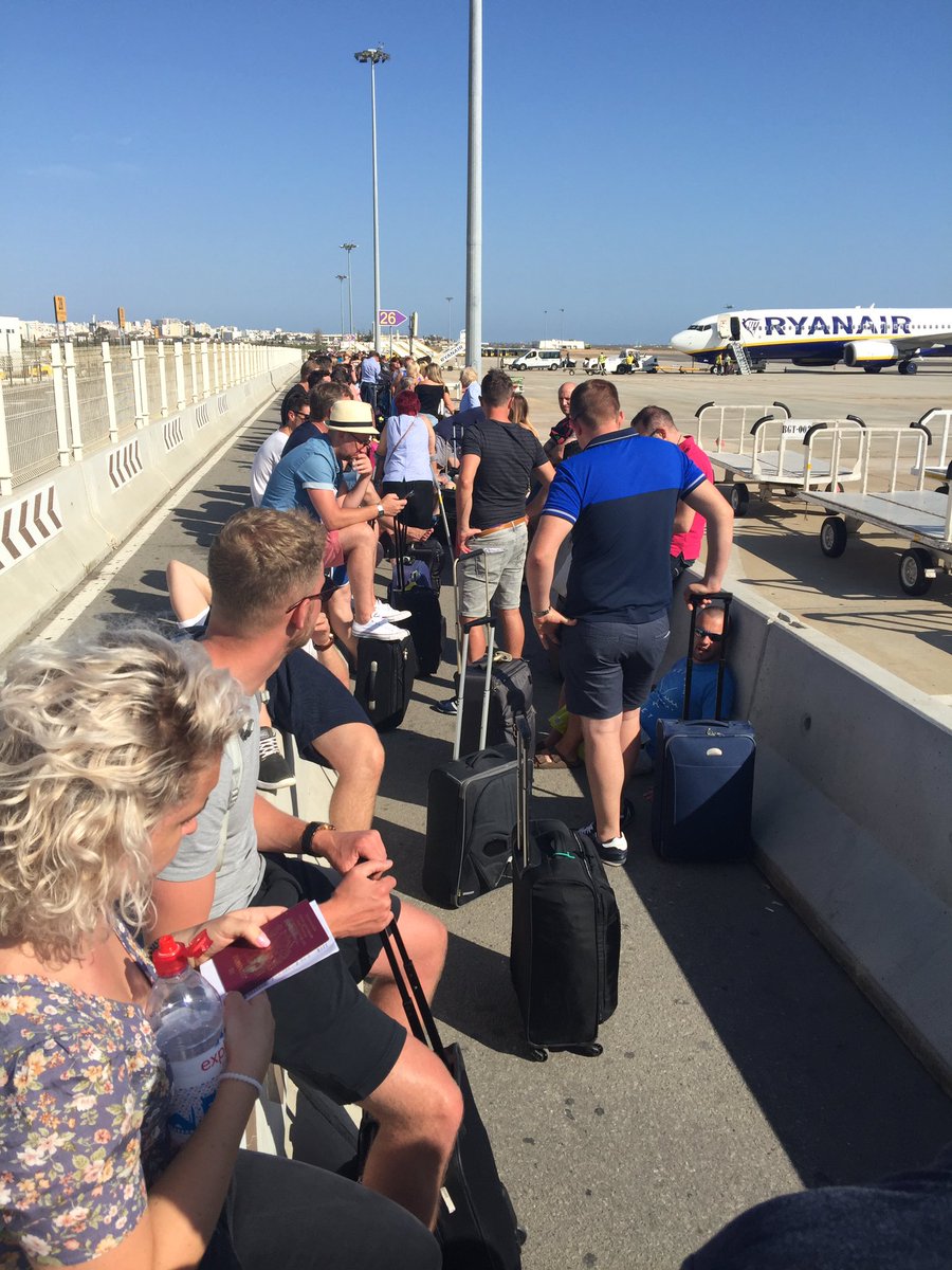@Ryanair can you tell us why we have been stood outside in this heat for for over half an hr? There are children and people on crutches...pic.twitter.com/DYctPJaLo6