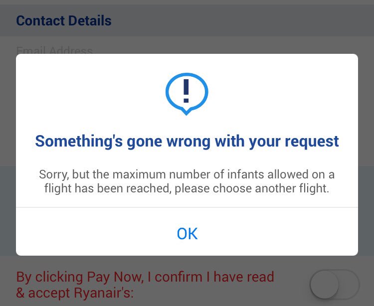@Ryanair hi... think something is up with the website/app... not letting us book and we’re not booking with infantspic.twitter.com/OOEZ6kyy4r