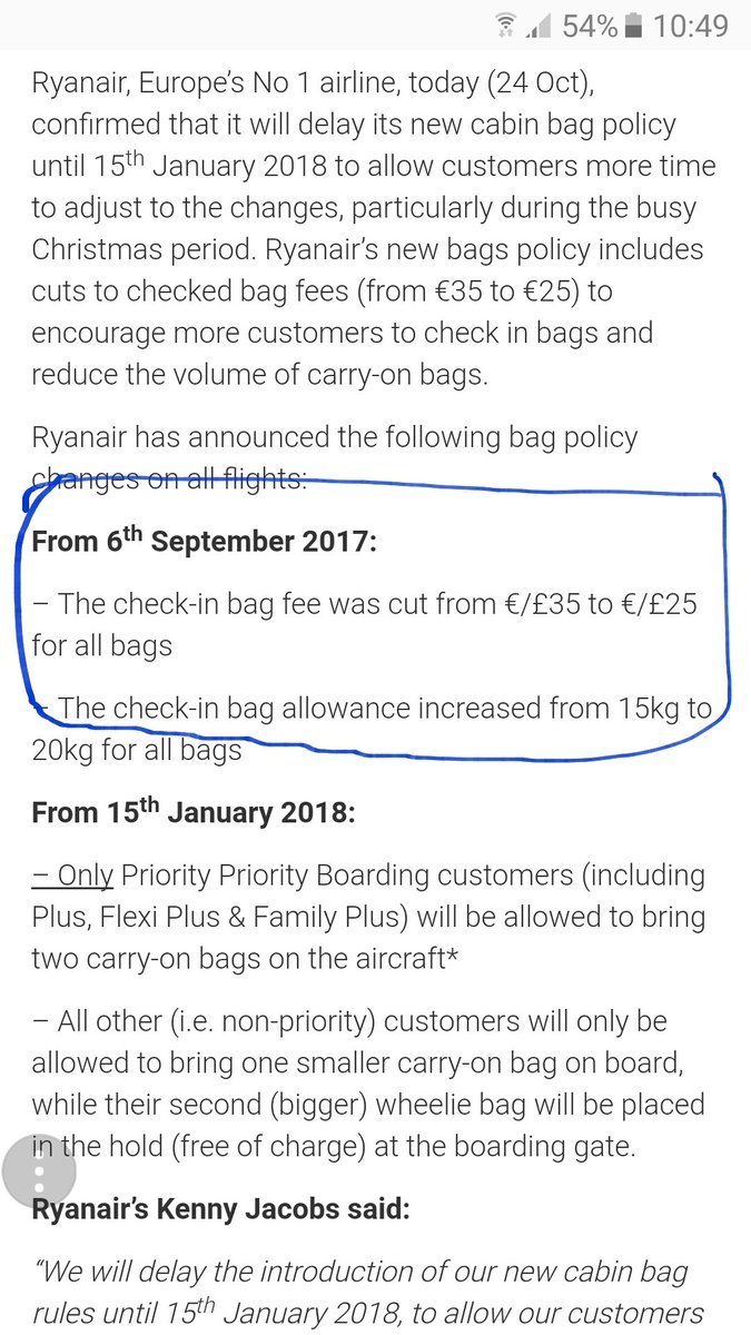 Well, this is an out and out lie considering i couldn't book a 15kg bag last week and was charged 40euro each way.pic.twitter.com/YtoqoTVu9L