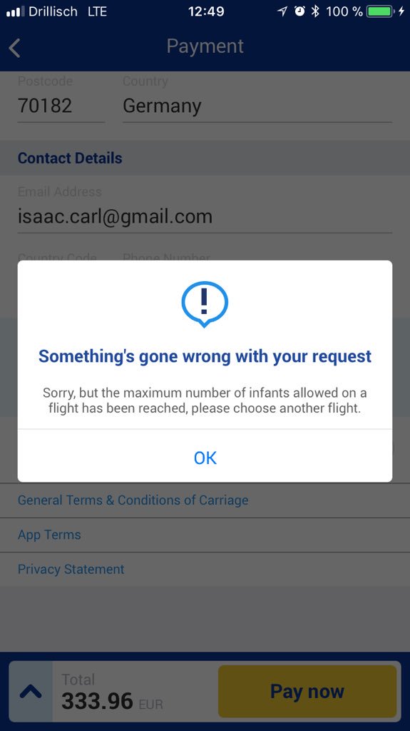 @Ryanair What’s the deal with your app?! Trying to book 2 adults to MAN and app says too many infants on flight! Then just crashes