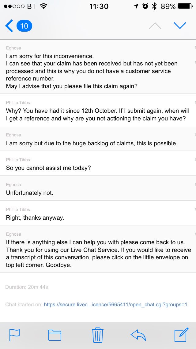 Hi, it’s URY2MP. We submitted a claim on 12th Oct but didn’t receive an email confirmation or reference. We have been told on three occasions that you have received the claim but not looked at it yet