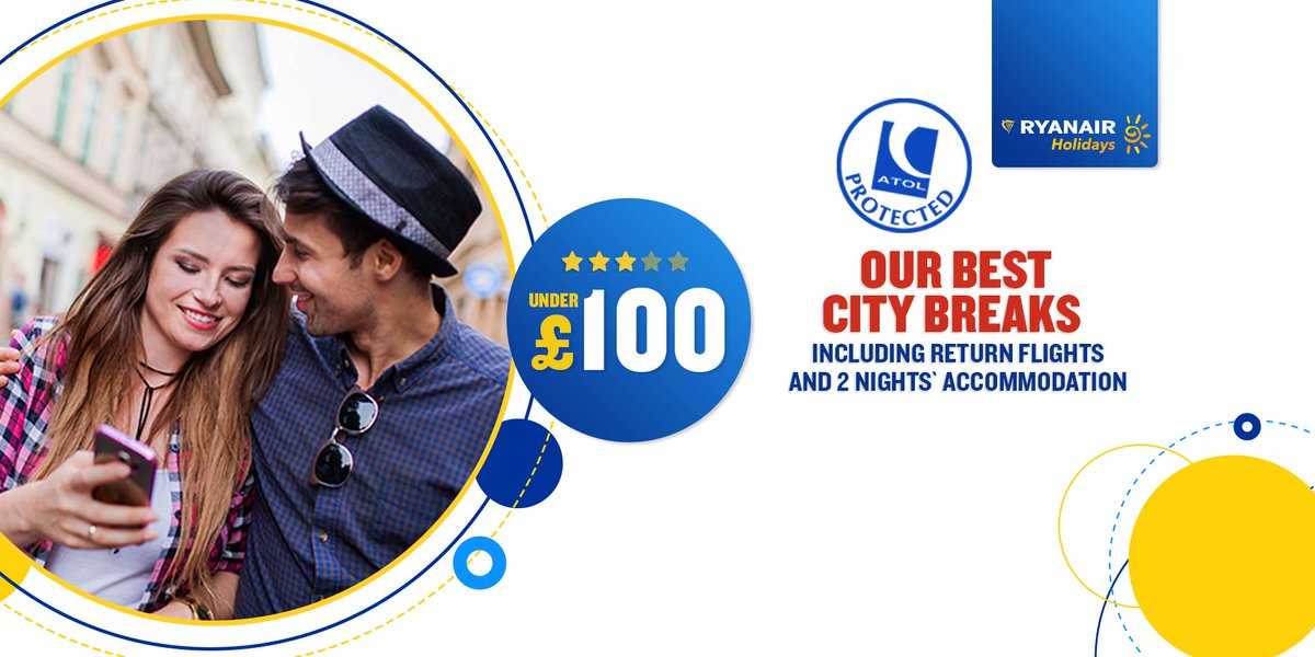 . This week's offer...our best city breaks under £100, including return flights and 2 nights accommodation. Book now with http://Ryanair.com here https://goo.gl/68utGV pic.twitter.com/ywdiBBsWCd