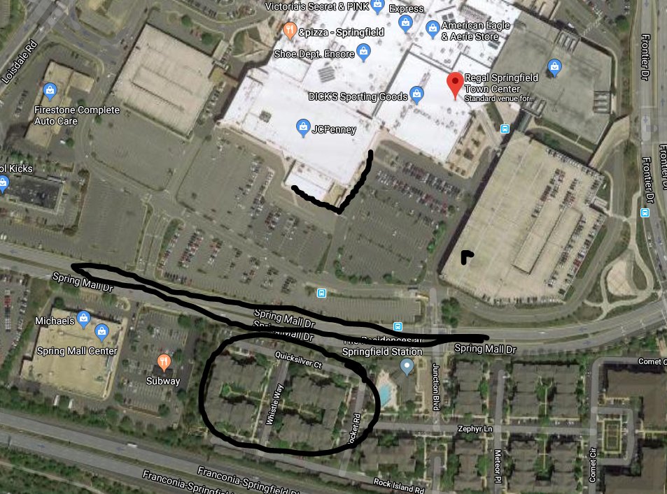 Third - Non-Picture data *checks profile* "Greater D.C. area* Well damn. Could be anywhere close. Best bet? Northern VA side of the river. Everywhere else is either less kept or denser. Shopping centers with Regal 12s in Northern VA ? Oh look. There's only one. Jackpot? 9/xpic.twitter.com/q9xU4PoOpu