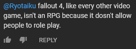 I've heard this ~~x isn't an RPG because you don't rooole-plaaay~~ before for individual subgenres, but never for video games as a whole medium. Guess the gatekeeping elitism spreads to tabletop RPGs as well.