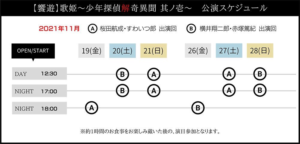 本日も饗遊『歌姫』 ~少年探偵解奇異聞 其ノ壱~ ご乗船ありがとうございました。 明日はAチーム最終日です