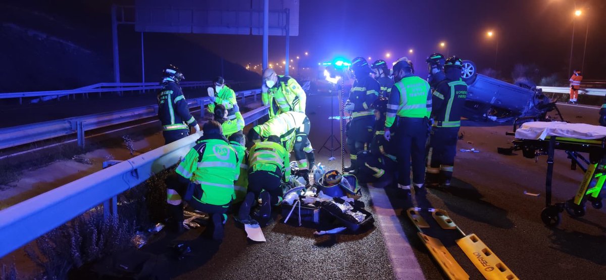 @SAMUR_PC atiende a los dos ocupantes de un turismo que ha volcado. El herido más grave tiene varios traumatismos severos. Ha sido intubado y trasladado muy grave al 12 de Octubre.pic.twitter.com/rlIw07ywvGShow this threadThanks. Twitter will use this info to make your timeline better. UndoUndo -