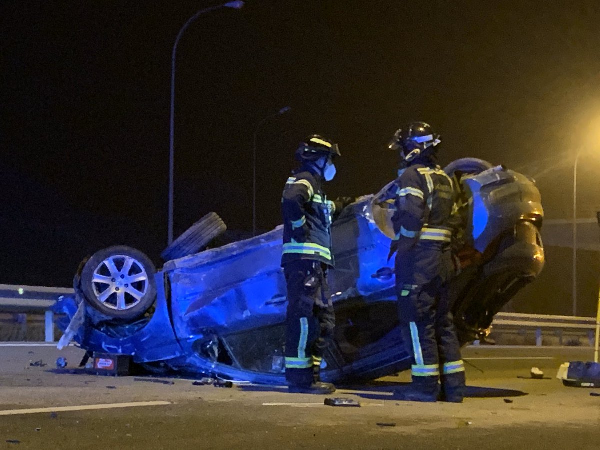 @BomberosMad aseguran el turismo y colaboran con@guardiacivil en su retirada.