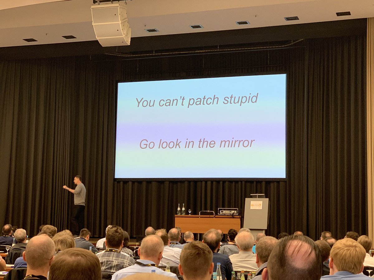 @cirosec#ITDefense team for a great event in Bonn! When security professionals tell me "You can't patch stupid" my reply is "Go look in the mirror". People aren't the problem, we the security community are the problem.https://twitter.com/cirosec/status/1224976391373979648 …