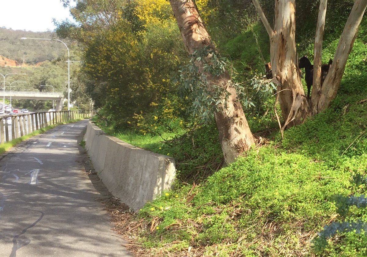 3 or more goats on bike track next to SE Freeway @DPTI_SA Between Mt Osmond exit and dog kennels. See top right.pic.twitter.com/i3GVjzgchh