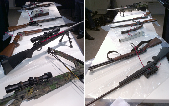 #Police seized firearms, other weapons & arrested 2 men after searching a house @ Munno Para West. http://bit.ly/K1bJmf pic.twitter.com/PZwzqKg0