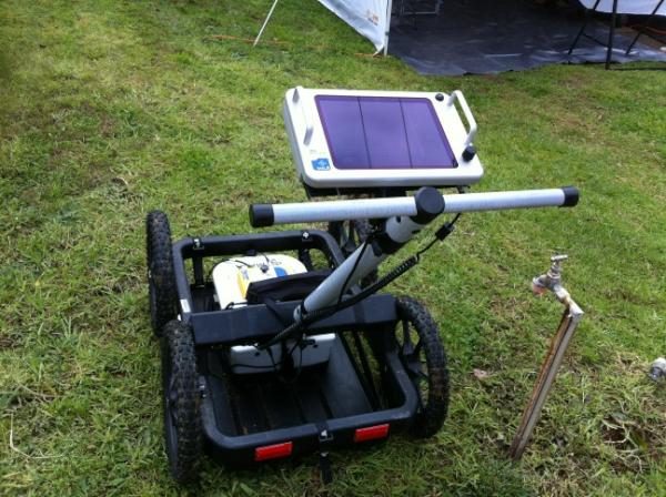 A close-up of the ground penetrating radar equipment being used in the Hackham West search #LouiseBell #policepic.twitter.com/C2i22C6h