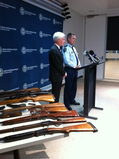 Attorney-General John Rau and #Police Commissioner Gary Burns announce gun amnesty #keepingsasafepic.twitter.com/cNHmQVHo