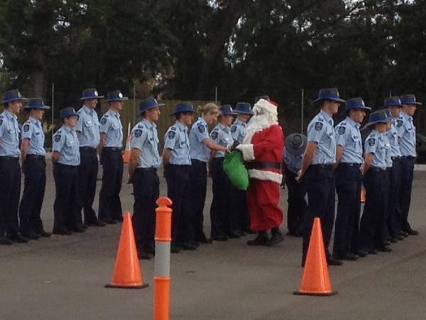 Father Christmas hands out goodies at the #southaustralia #police academy today to Cadet Course 4/2012.pic.twitter.com/BVCiSHzt