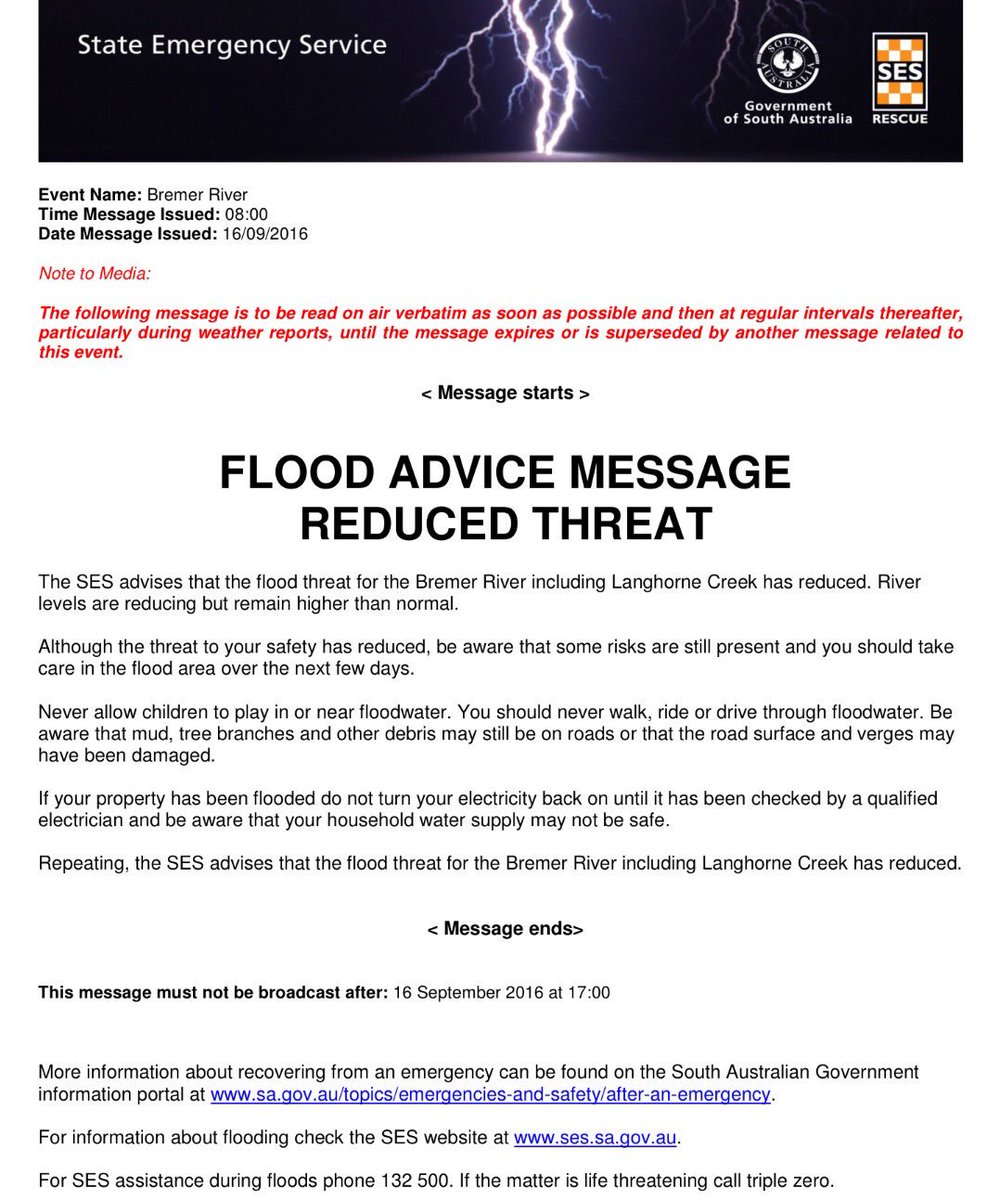 Flood threat advice - please click on the link belowhttps://twitter.com/SA_SES/status/776558237378236416 …